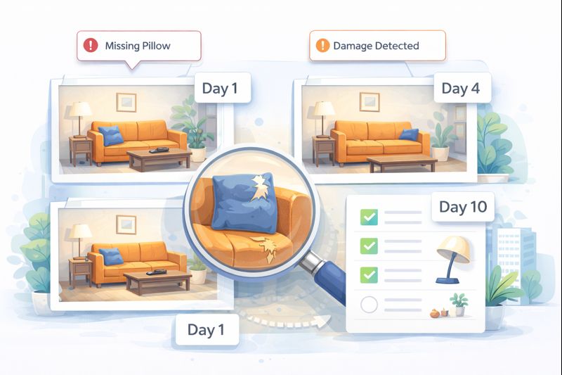 Monitor fixtures, furnishings, and assets over time, making it easy to spot changes, deterioration, or missing items between stays or inspections.